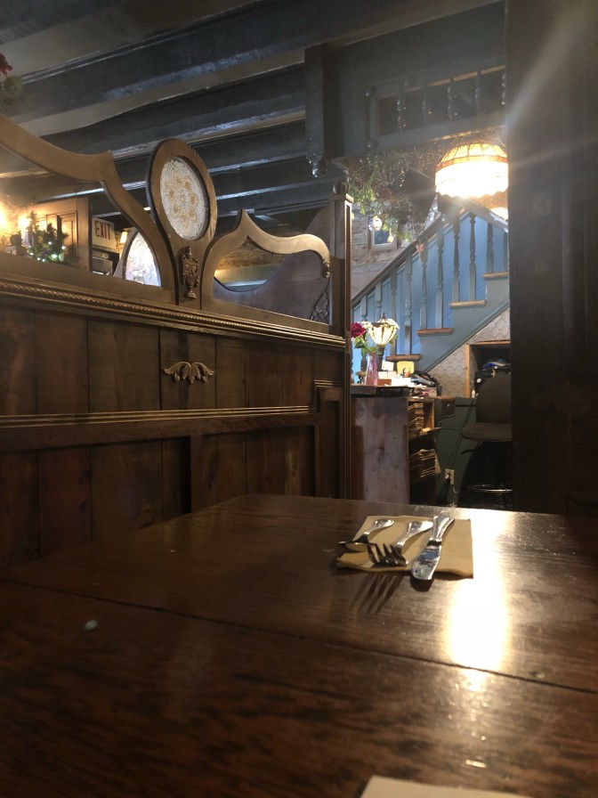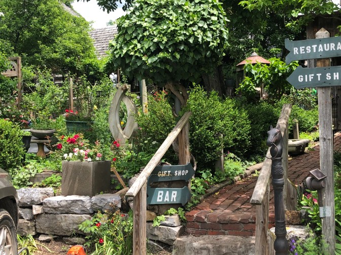 Started out with another beautiful day. Already been to Lookout Mountain and Rock City in Chattanooga before so by passed them this time, we’re too anxious to get to PA. Did stop at a neat place to eat in Wytheville,VA called The Log House. It was built in 1776!!! Each and every room seemed to tell a beautiful story… the picture of the young girl holding yellow daffodils and blue iris, the antique booth to enjoy our meal in, and the old oil lamps. Could the wallpaper and carpet going up the stairs be original? Maybe not but it was certainly vintage. This was a place to slow down and relax. The garden was a dream, “Real “bunnies and doves cooing, reminding me of my grandmothers where I got my love for gardening.