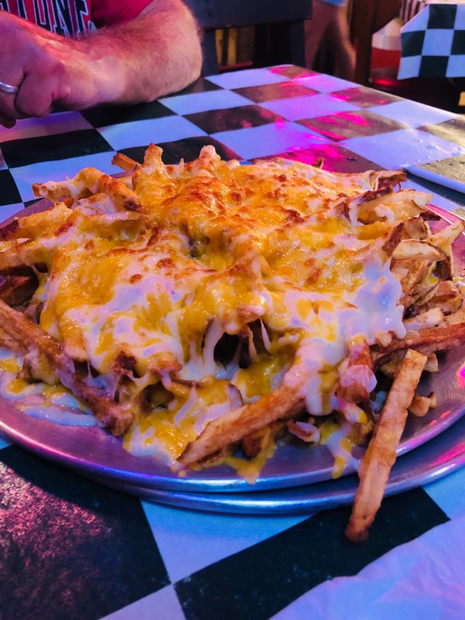 Made it to Amarillo around 5:30. We’ve been to the Big Texan Restaurant several times so decided to try one of The Diners, Drive-Ins and Dives that Guy features on his show. It looked really rough on outside and on inside maybe even rougher. They serve bottles of drinks out of a bathtub , you must pay in cash and there are only about 12 tables. Saying the burger was great is an understatement and the cheese fries well , they were off the chart! If you ever are driving through I HIGHLY recommend you give it a try. The temperature got up to 100 but it’s been a beautiful day. Came a shower about 7 tonight and cooled things off some. We should reach cooler weather by tomorrow.