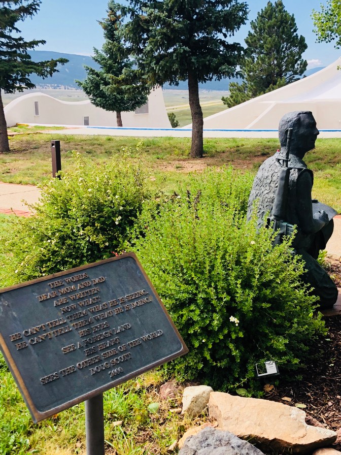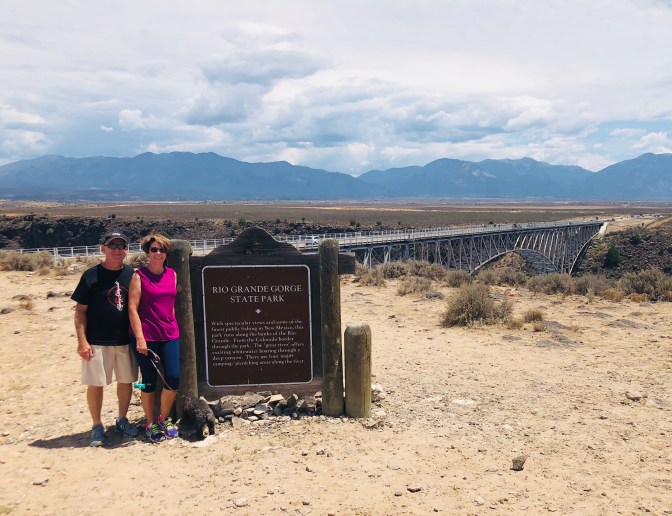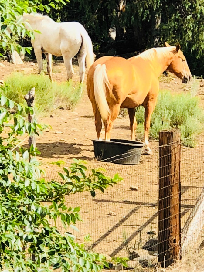 Next was the Rio Grande Gorge. It just seemed to show up from no where. Taos was a true New Mexico town even the Mc Donald’s and Walmart were Adobe. The town was really neat, filled with lots of shops of local art and places to eat. We went to Kit Carson home, that guy was a true frontier man. It got up to 84 while we there. Oh and everywhere we have gone has been very pet friendly( even the restaurants will serve your dog water). As we headed back to Eagles Nest the temperature steadily dropped and was 67 when got back with a light rain. There are prairie dogs barking? everywhere. You’ve heard people say” I did it cause I could ” before? Well I guess that was the thought this horse had with both back feet in the tub. Oh, and live music 🎼 tonight at the campground. It was a wonderful day!