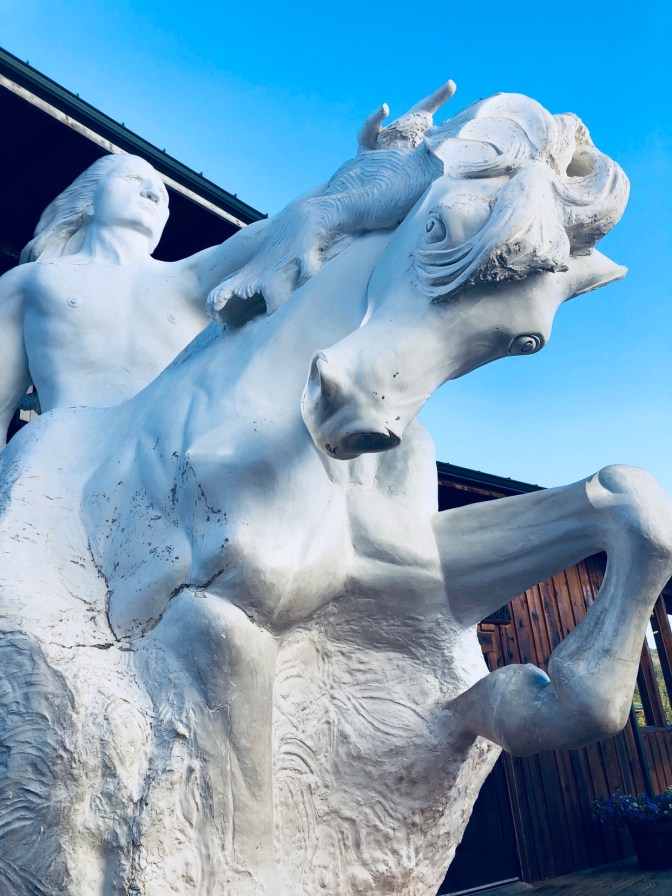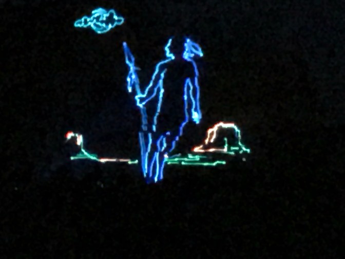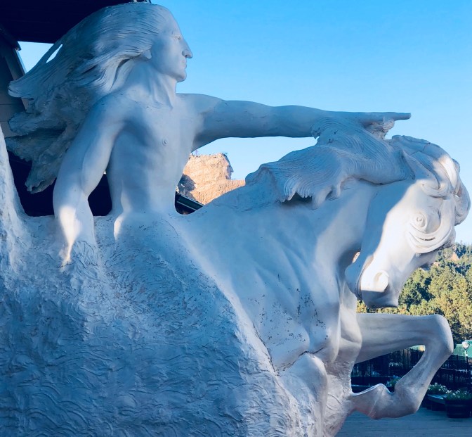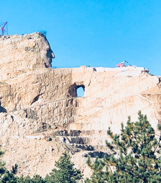 Arrived at Beaver Lake RV Park . It ‘s nice with lots of trees. Crazy Horse , is an interesting work in progress. We stayed for laser light show which