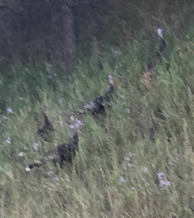 some turkeys 🦃. Can you tell which animal is real, the buffalo or the sheep?