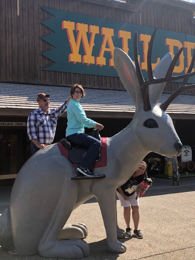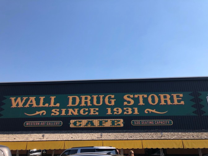Did’t get back to camp till 11 p.m. We had no idea there was so much to do here. Went to Wall Drugs today it was established in 1931 , after no business and about to shut down, he put a sign on hwy. saying “free ice water” for people passing through in the Badlands Prairie in July .