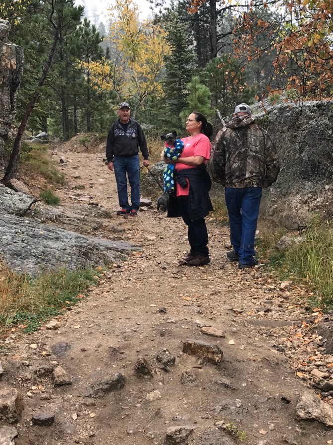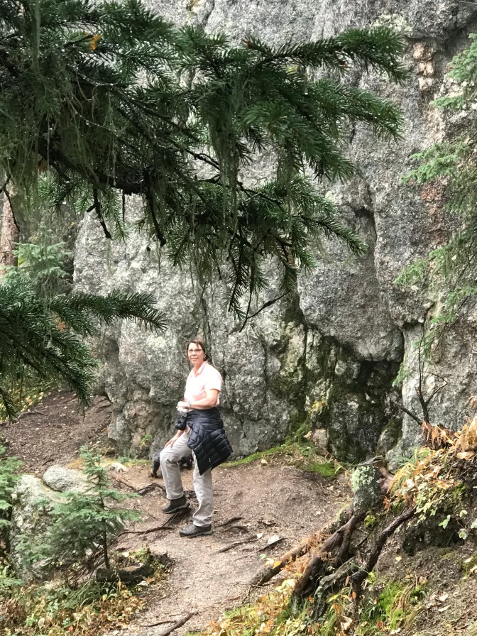 We thought walking 3.7 miles up a moderately difficult trail to see a stone fire tower at the tallest peak in South Dakota would be easy. It was a day with high temperatures of 61 and misting rain ☔️. We didn’t let that slow us down or deter us. The walk up was doable with the aspiration of seeing the tower but ,boy, the 3.7 mile walk back got rough. Did I mention there were no bathrooms along the way (except a tree 🌲 or bush ) ? Making memories. 😬 Great 👍🏻 hair day!