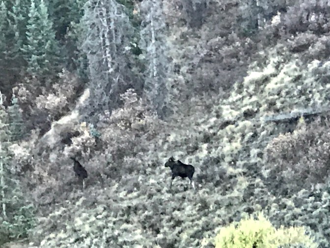 Gregg saw these 2 moose. Thought there was just 1 then another came out of the bushes near Continental Reservoir. Got to watch them walk up the side of the mountain. So thrilling! Took the opportunity to praise God who makes this all possible.