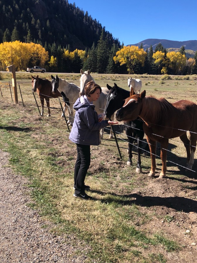 These horses at the RV park had to wait their turn for carrots 🥕. I went to the Rainbow Grocery and bought them especially for them.