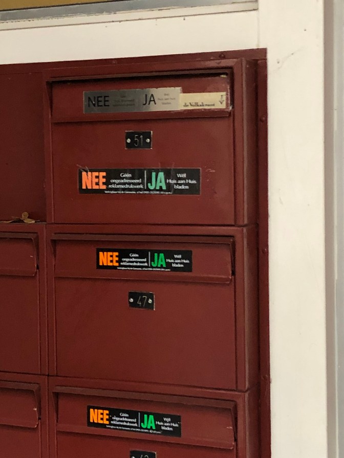 Nee and Ja on mailbox lets the postman know if you want junk mail or not. ( wish we had that option)