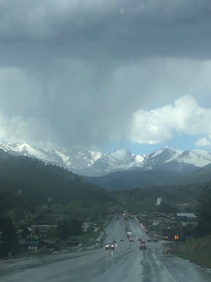Spent the morning beside the river. Went into Estes Park around noon. It was actually hailing when we arrived then sun came back out. It’s a chilly 50 degrees and I’m in shorts😬Talk about extreme change in weather!