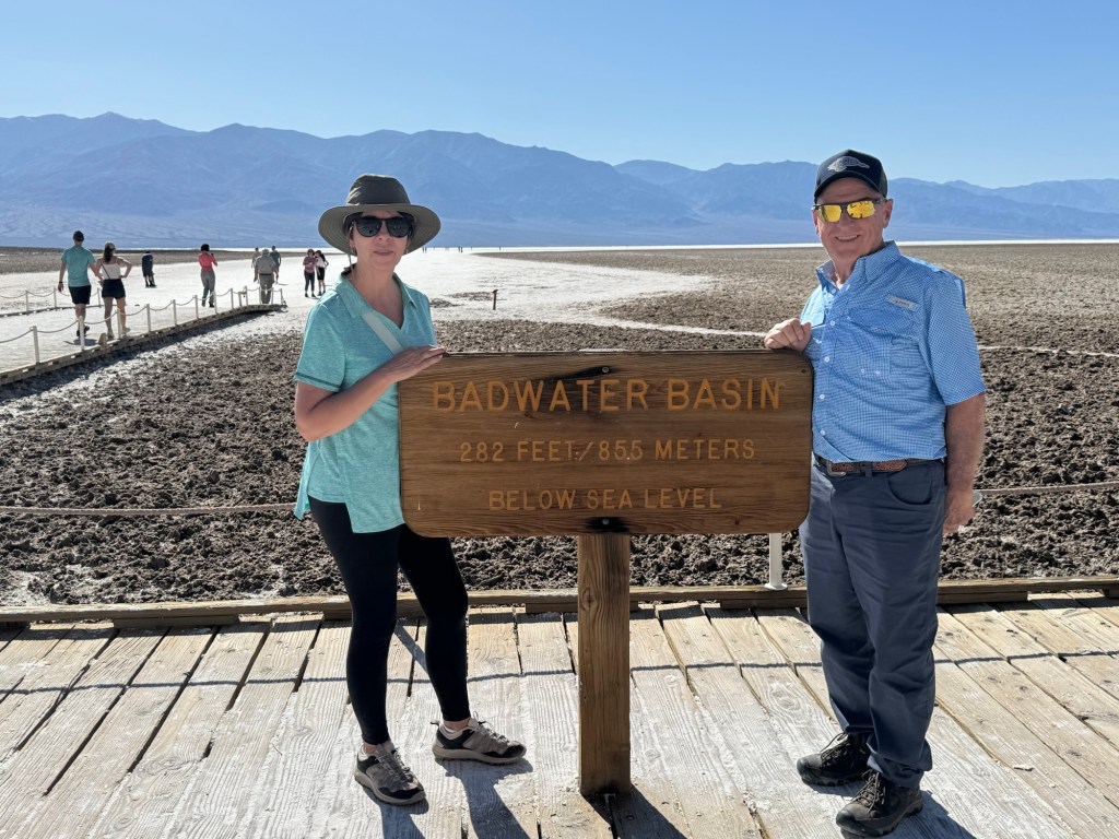 Driving through Death Valley Snow way up high Las Vegas Dry and Parched Devil’s golf course ( that is salt) Dante’s View Walking on Lowest Point in United States 282 ft. Below sea level, Lake Manly only lasted a few weeks. Share this: Click to share on X (Opens in new window) X Click to share on Facebook (Opens in new window) Facebook Like Loading... Published by gillsrbornetotravel View all posts by gillsrbornetotravel